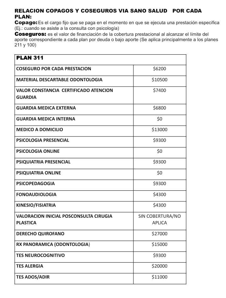- Plan 100% con el aporte -Con Copagos (ver copagos)